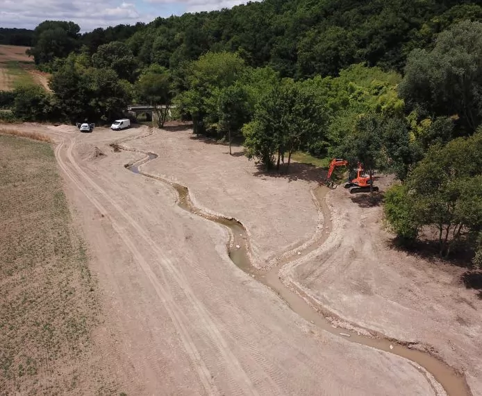 Ce cours d’eau, historiquement modifié (rectiligne et homogène), retrouve aujourd’hui un tracé plus sinueux et naturel. Résultat : son linéaire est passé de 975 mètres à plus de 1 130 mètres, grâce à la création de méandres et à un réaménagement dans son gabarit originel.