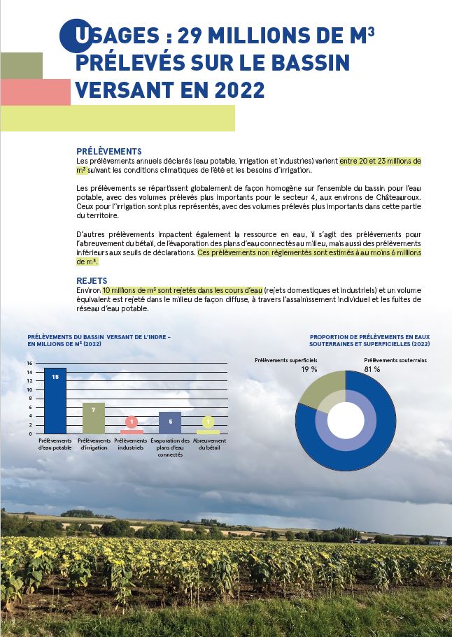 Une première étude, à portée scientifique, à l’échelle du bassin versant de l’Indre a été initiée en 2021 dans le cadre d’une convention Recherche – Développement associant le BRGM, l’Agence de l’eau, le SABI 36 et la Chambre d’Agriculture d’Indre-et-Loire. L’étude, validée par un COPIL, regroupant les acteurs de l’eau du bassin, est consultable via ce lien : Etude RP72470FR BV Indre.